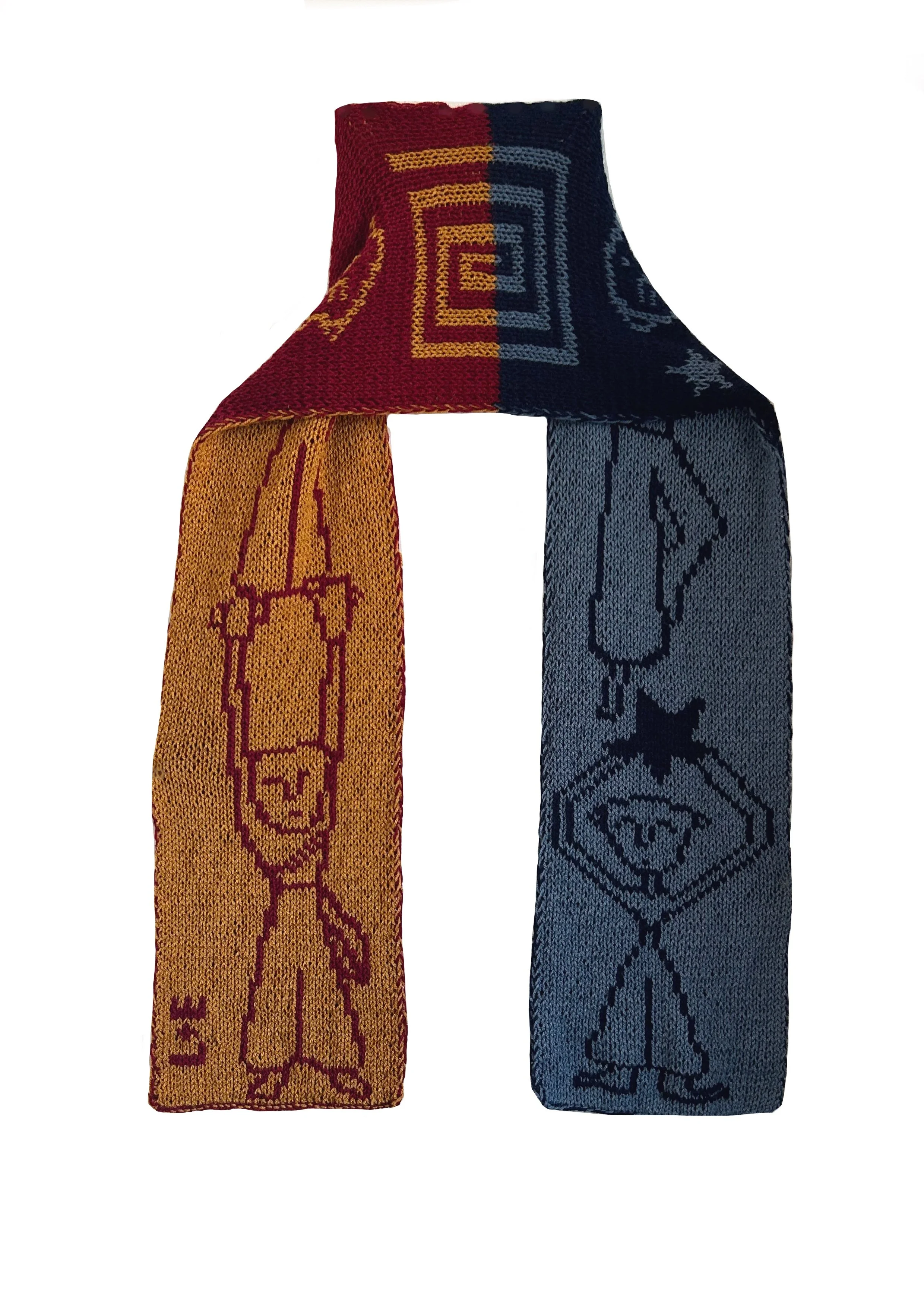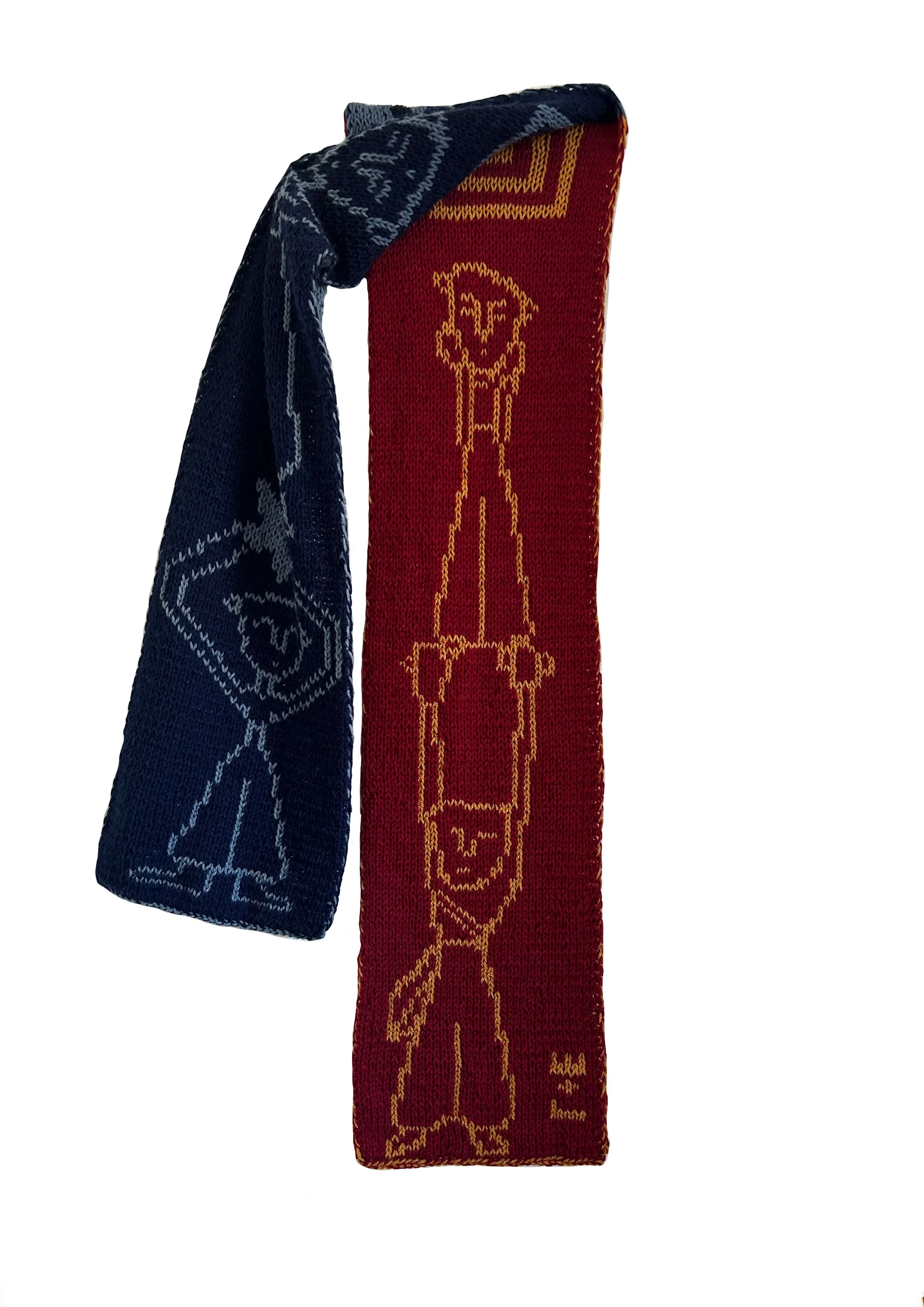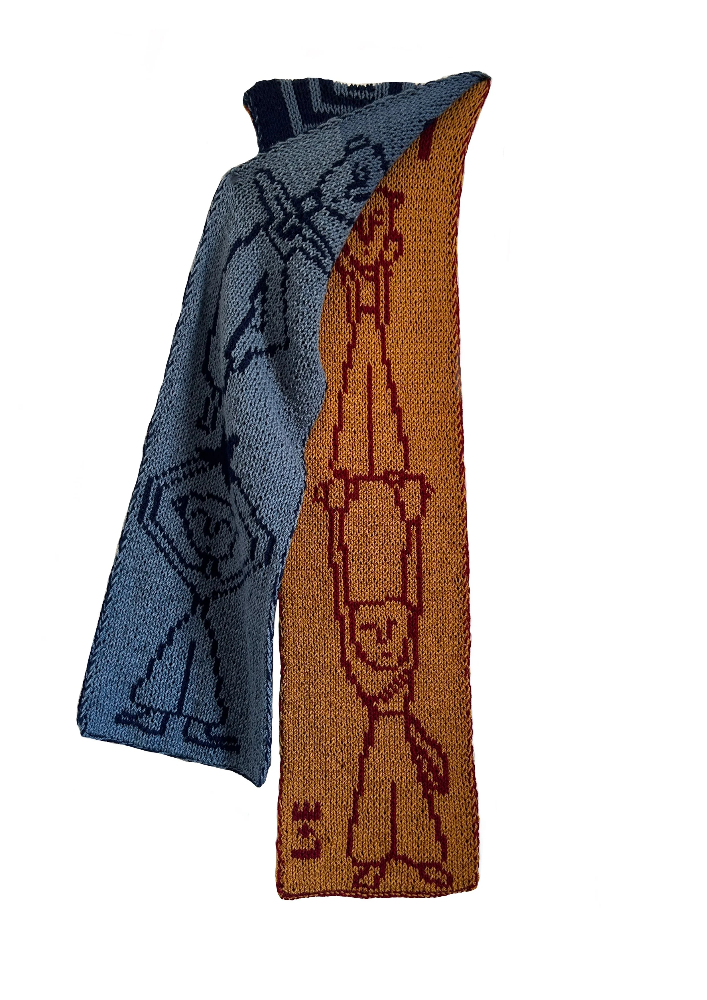 Scarf knitted by me, inspired by illustrations by Leon Eichelbaum, filmed by Marius Gaile.